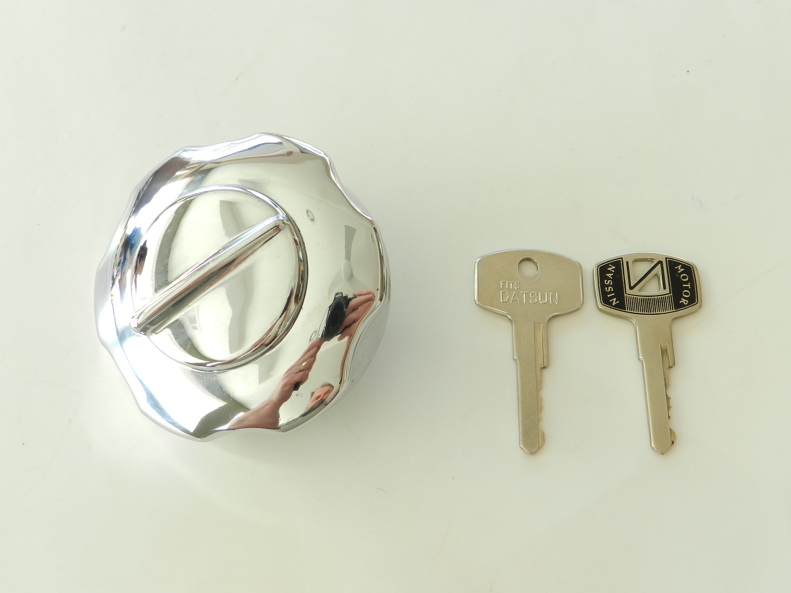 Used locking gas cap, with keys as shown, Nissan